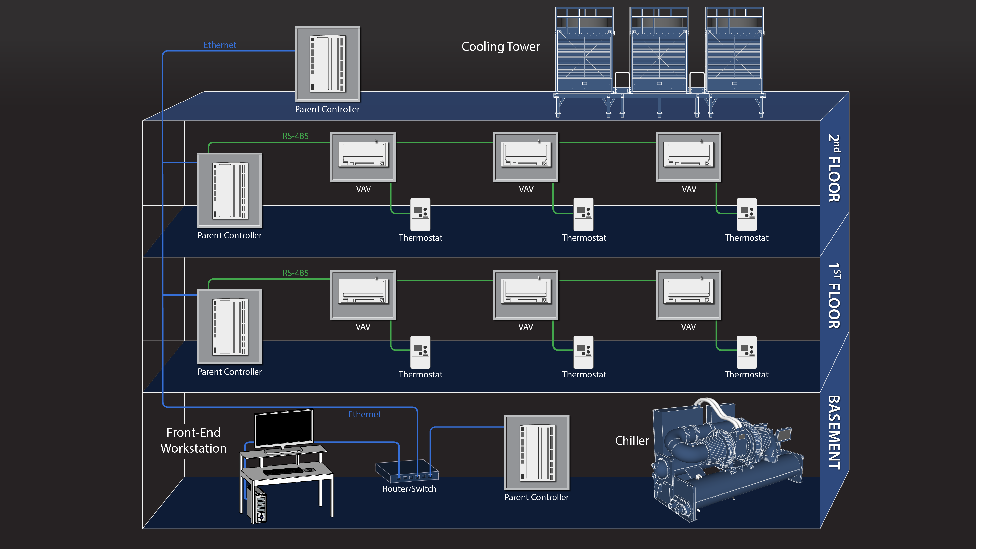 A prime example would be a BAS that utilizes RS-485 wire from the front-end computer to the parent-level controllers. Modern building automation systems utilize CAT 5/6 cable in this part of the system architecture because of the amount of traffic passing through. RS-485 simply does not provide enough bandwidth to efficiently pass the number of messages required through at a reasonable speed. While you may be able to communicate with these parent-level controllers through integration, you’ll have the same issues with network speed that you had previously.