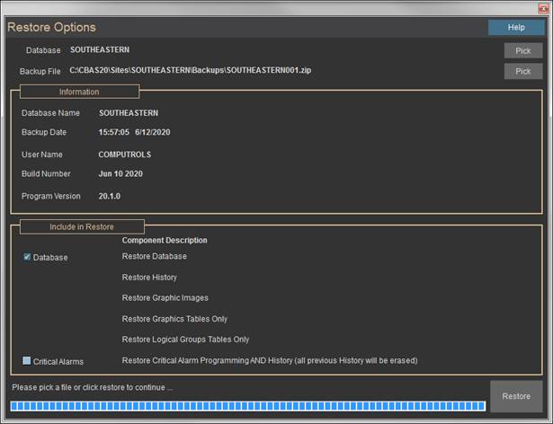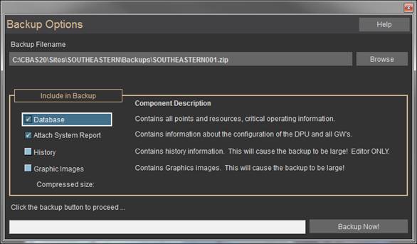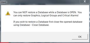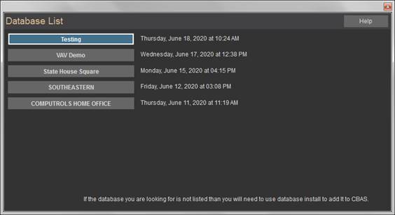 · Databases can only be run from the C:\CBAS 17\Sites or C:\CBAS19\Sites folder.