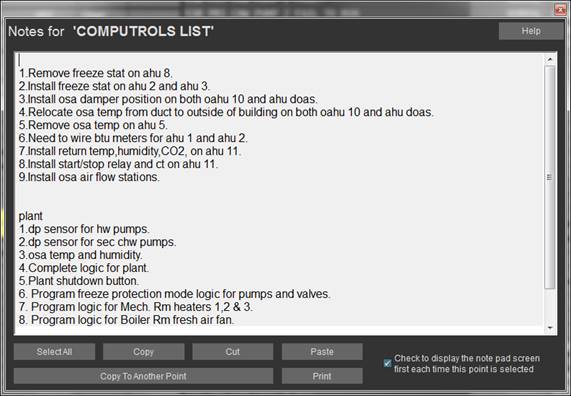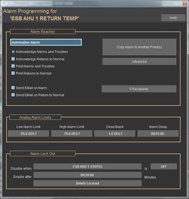 · Added a Copy Email Alarm button which copies the setup of the contacts to new points. Increased the number of Header Points allowed in CBAS from 2 to 10.