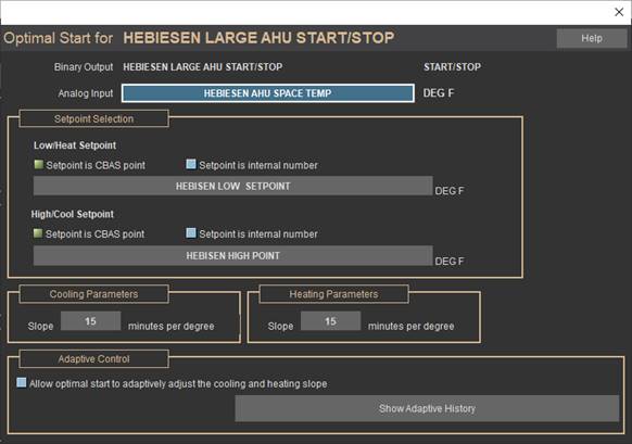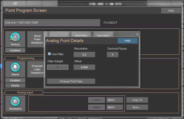 · Graphics paths are now relative paths to the database. This will change in CBAS 17. The Decimal Places for Analog points have been moved to the More button.