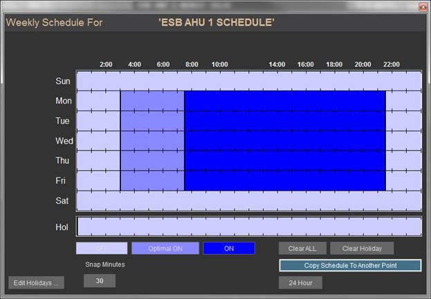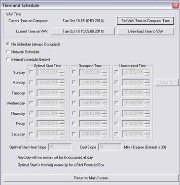 The Box Mode point can be commanded in the Live Data screen of the Utility Program. However, for this to work, you must have a CBAS connection to the VAV-B, or at least a Host Controller connection using OPTO22 "on-controller" Protocol configuration. On the Host Controller, you make a software point to contain the logic that will command the Box Mode point to 5 PrimayAirHeatDeadband.