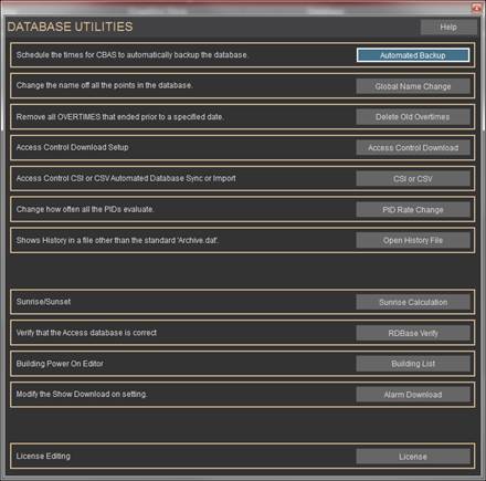 Database (Now on Database Menu in CBAS 15)