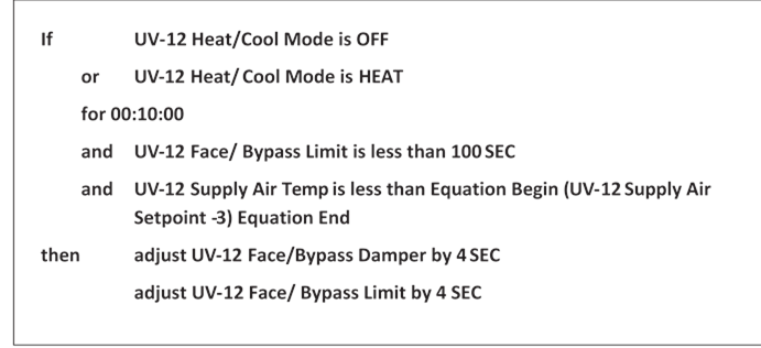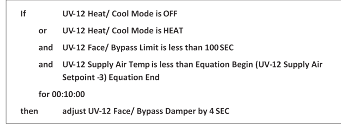 Internally when in Primary Air Heat mode for a standard box, the software will invert the space temp error. Then it uses the cooling parameters for heating mode and Heating parameters for cooling mode. So the CFM Setpoint will now adjust from min to max when in heating (like cooling used to do) and the CFM Setpoint for cooling will be set to the Heat CFM. CFM Setpoint calcuation is the only thing that changes.