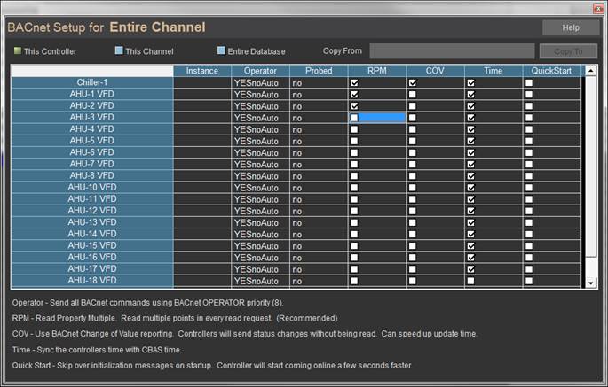 · There is a new BACnet Setting feature that allows you to copy settings like Instance, Change of Value and Read Multiple to other controllers that haven’t been Probed.